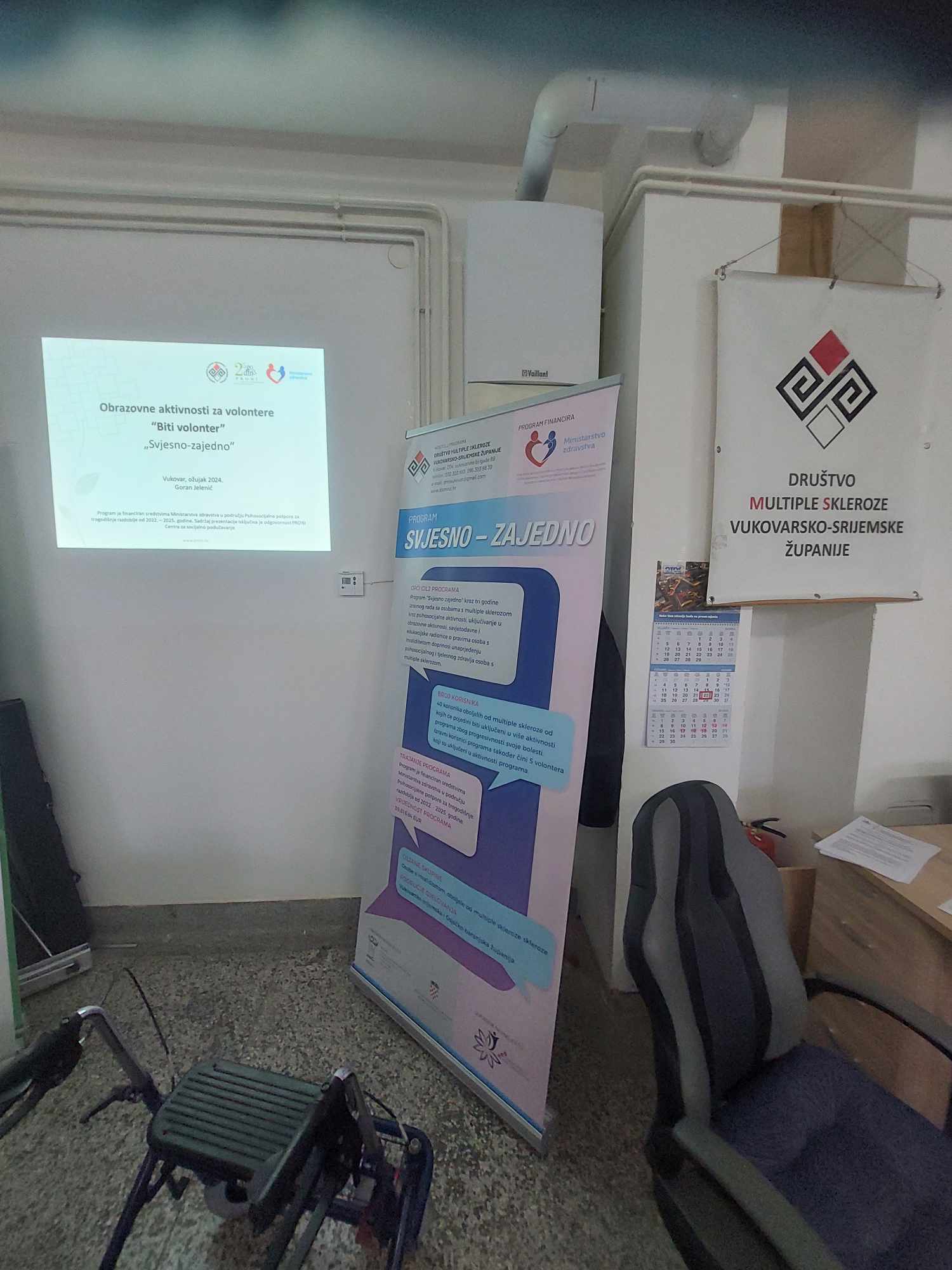 Dana 28.03.2024. godine u prostorijama Društva multiple skleroze vukovarsko-srijemske županije održana je obrazovna aktivnosti za volontere po programu “ Svjesno-Zajedno“ financiranom od strane Ministarstva zdravstva. Obrazovnu aktivnost za volontere održala je partnerska organizacija po programu PRONI centar za socijalno podučavanje iz Vukovara, aktivnost je održao gosp. Goran Jelenić.