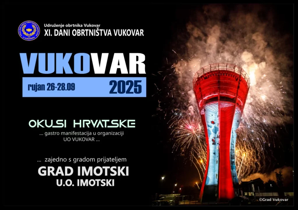 Manifestacija Dani obrtništva u Vukovaru ” OKUSI HRVATSKE “. održat će se dana 27. rujna 2025. godine u centru Vukovara u prijepodnevnim satima.