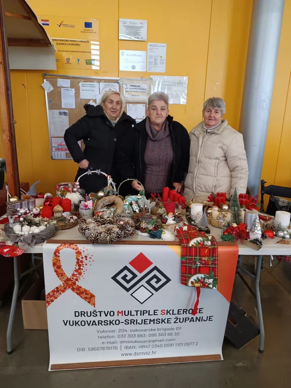 Tijekom izlaganja svojih kreativnih, božićnih radova Društva multiple skleroze vukovarsko-srijemske županije članovi, volonteri i djelatnici društava su prikupljali dobrovoljne donacije koje će biti usmjerene za repromaterijal za daljnje kreativne radove, ujedno se skupljala donacija za prijevoz osoba s invaliditetom.