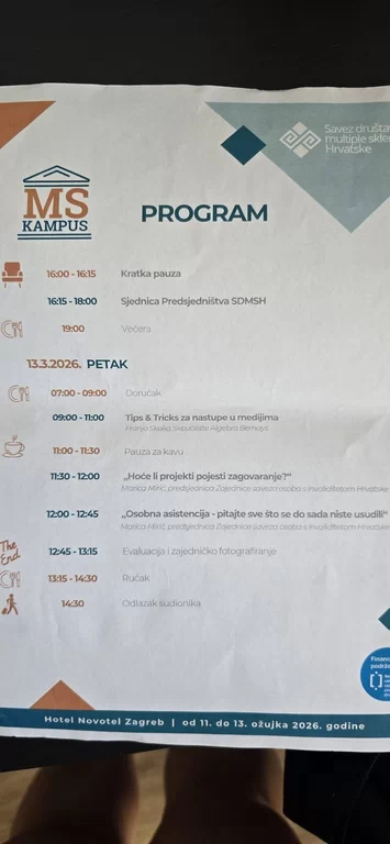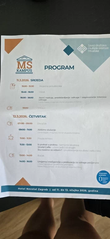 Društvo multiple skleroze vukovarsko-srijemske županije sudjelovalo je na Edukaciji zaposlenika održana je od 11. do 13. ožujka 2026. godine u Zagreb, u organizaciji Savez društava multiple skleroze Hrvatske. Trodnevni kampus okupio je zaposlenike iz sustava udruga članica s ciljem unaprjeđenja stručnih znanja, jačanja kapaciteta organizacija te razmjene iskustava u radu s osobama oboljelima od multiple skleroze.